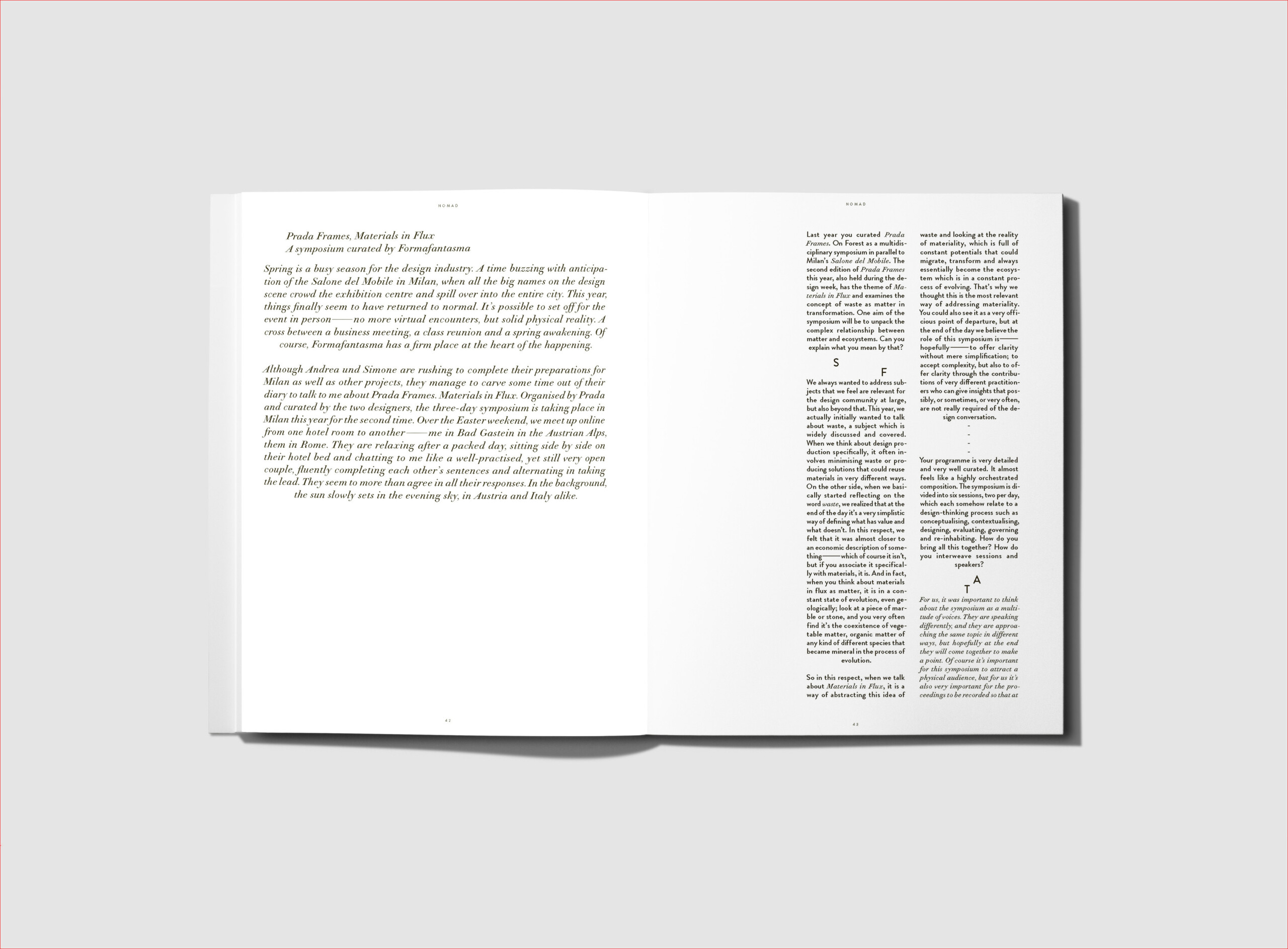 Zheng Bo: Between heaven and earth — Formafantasma: Materials in flux — Nadine Vicentini: Why disruption unleashes creativity — Alexandra Daisy Ginsberg: You can’t recreate a one-to-one of the natural world — Valentina Karga: What is at stake is our collective wellbeing — Aric Chen: Looking at the world as a garden — Armand Grüntuch & Almut Grüntuch-Ernst: From isolation to contemplation — EcoBirdy: Make the most of plastic — Studio Ossidiana: Birds don’t need a floating Island, but maybe we do — Michele De Lucchi: This is the moment to become a revolutionary — Studio Plastique: Humankind — Steffen Erath: This is the decade of decisions!  — Barbara Corti: Light has always been an alphabet for telling stories
